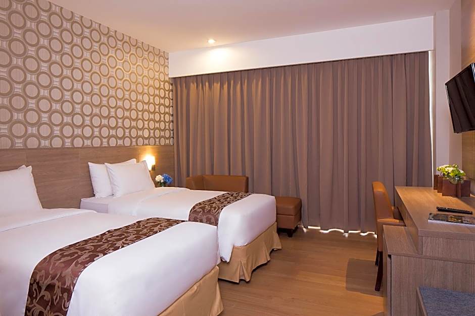 This air-conditioned twin room is consisted of of a flat-screen TV with cable channels, a private bathroom as well as a balcony with city views. The unit has 2 beds.
